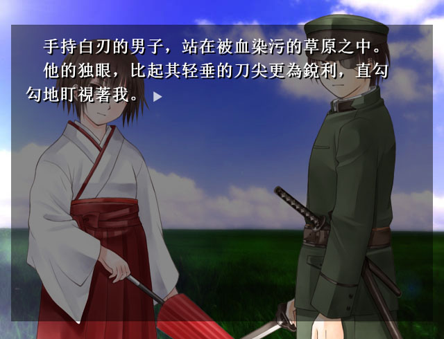 游戏的文笔非常优美。在游戏中玩将以两种视角进行游戏,一者为以捕捉凝鬼为职业的未明,另一个为男主角。炎炎夏日,茫茫草原,座座电塔相连,延伸至远方,男主放松时刻被打断,一身绯色装束的打扮的少女映入眼帘,意外的相遇由此开始。