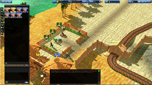 游戏画面明亮艳丽,很适合游戏的主题色彩。玩家在游戏采用俯视角游戏方式,可以从多个角度观察你的公园。游戏时你可以根据不同的要求雇佣不同的工人,迎合顾客的要求,你的美妙想法也许将带给你更多财富。