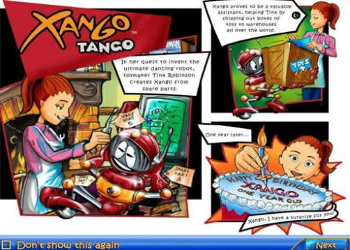 Tinx在不断探索中终于成功的发明会跳舞的机械人,并给它取明为Xango。Xango在Tine的玩具工厂中快乐的工作着,每天把成箱的玩法发放到世界各地。就在Xango一岁生日来临之季,它想做些事情感谢Tine,于是用了整夜的时间发送了所有箱子,不巧Tine为Xango准备的升级材料也在这些箱子中,现在需要你帮助Xango找回这些生日礼物。