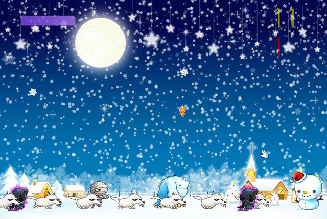 很可爱的小游戏,但是玩起来还是挺难的,使用1-4号数字键来发出不同的攻击,鼠标则是用来控制攻击的角度,同时还要抓取掉落下来的礼物,可爱的小雪人能坚持多久就靠玩家的发挥啦。