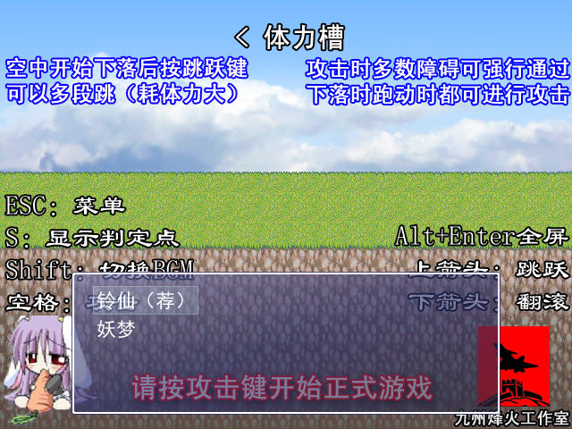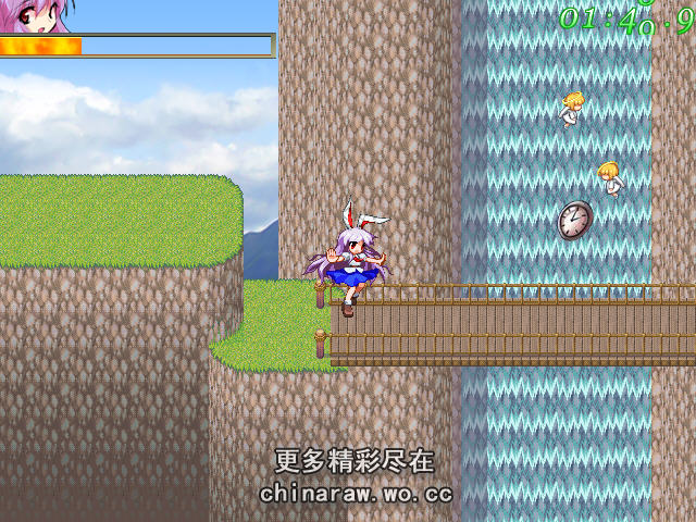很可爱的小游戏,跑酷的题材在东方系列里应该是少有的吧,游戏中要注意,跳跃是可以多连跳的,但是会消耗上方的能量条,当能量条没有的时候就会掉下来了,所以尽量保存一些以备不时之需!