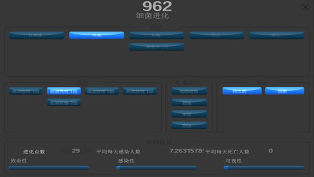 游戏中你需要让你的病原体不停的升级,让它的传染力,致死性变的更强,当然在这过程中,你的威胁也会被人类发现,然后他们就会研制疫苗,最后你就会像黑死病一样成为历史书上的知识,当然,这类游戏应该会有人类全灭结局,到时候就看有没有玩家能玩出来吧。