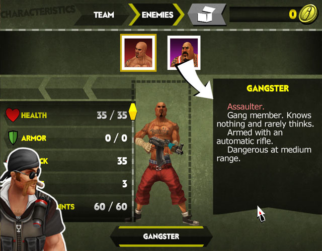 反抗小队是一款战棋策略类游戏,这是一款很新颖的战棋游戏,不是传统的剑与魔法,而是接头黑帮的枪械火拼,游戏中有5名不同的角色,分别拥有各具特色的武器,玩家将利用好他们完成任务。
