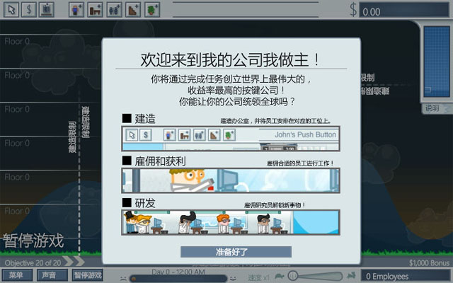 你是否曾经想过开一家自己的公司,你或许有着诸多新奇想法想要实现,那么这款作品将给你帮助。本作中你将可以建立一个合作性的办公室,让你的员工们能够很好的为你工作。再赚更多的钱,最终富甲天下。