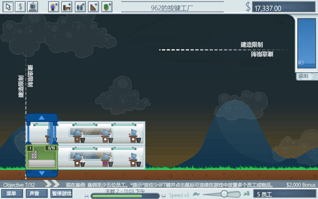 4.为了节约时间,建造建筑可以在夜间进行;而为了在完成游戏时获得更好的统计结果(游戏中的日期),可以在暂停后进行建造和雇佣操作;