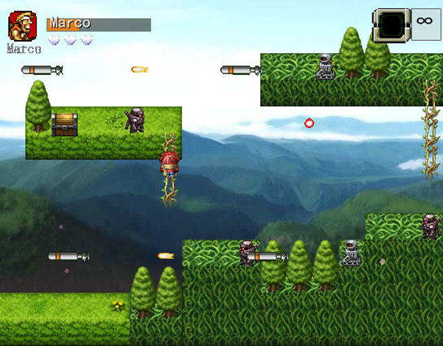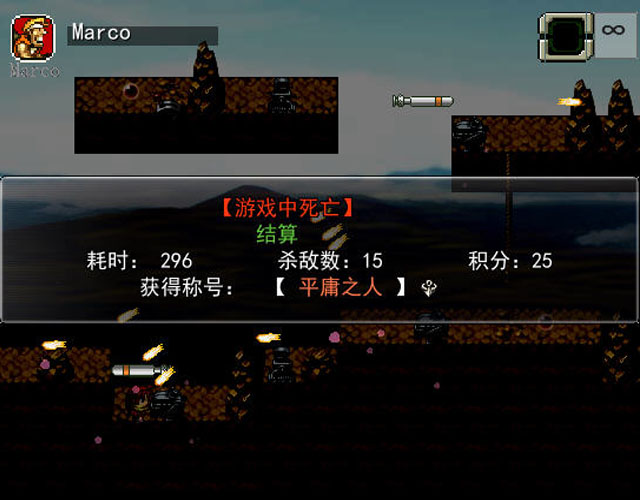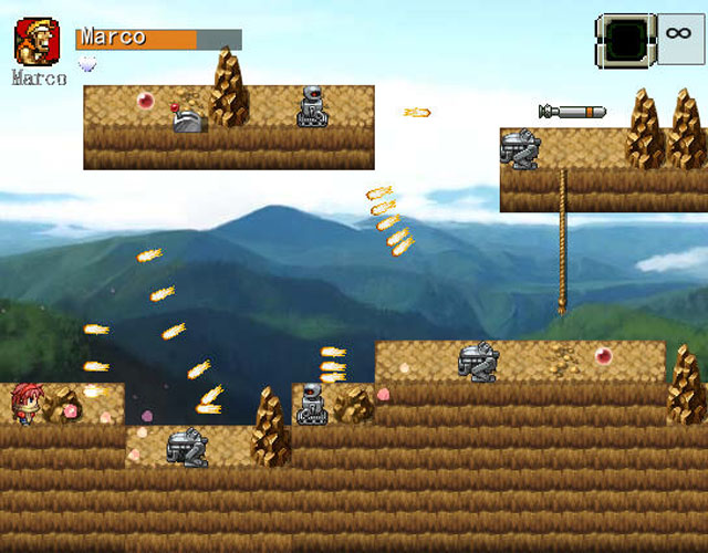 HERO OF metal是一位非常喜欢合金弹头的玩家自制的一款横版射击小游戏,游戏中使用了很多合金弹头中的素材,让玩家有似曾相识的感觉,不过其实游戏完全不同,玩家加入了“冲刺”这个重要的动作,让游戏有着与众不同的地方。