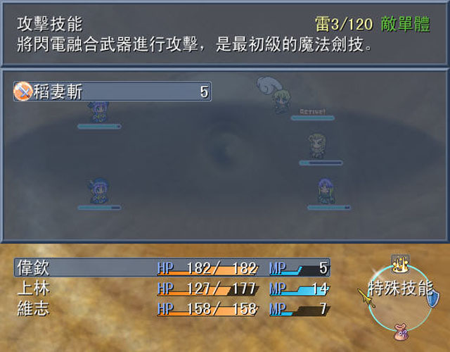 战斗方式介绍:本作战斗方式为横向战斗,预计最後可用角色20馀人,每次可出场7位角色。