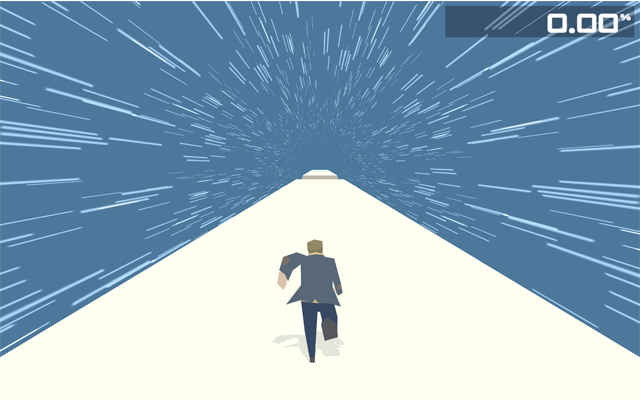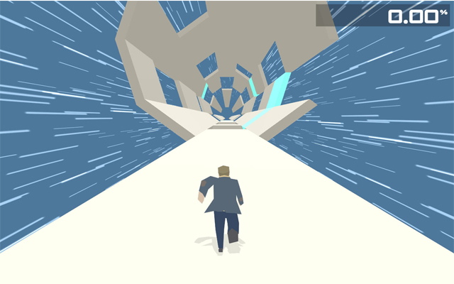 这游戏其实难度上满变态的,虽然看起来规则很简单,不过它的操作要求比起同类作品其实还要高些,而且还是用360度的旋转管面,而且加速控制还需要用加速区,所以跑的时候要很小心,其实穿著西装能跑这麼快还挺厉害的...
