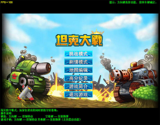 这是作者模仿儿时玩的红白机经典坦克游戏编写制作的一个普通坦克游戏,方向键控制移动,空格键开炮,另外支持震动手柄控制(推荐使用手柄玩)。程序内附带了地图编辑功能,您可以自己编辑增加地图,增加一个就多一关(当然前提是按编号命名文件),理论上支持无限多关。