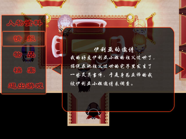 诡宅怪谈是玩家自制的一款解谜AVG游戏,在游戏中恐怖元素有一点,解谜的要素比较多,主角是一个巫师侦探!游戏各方面设定都很不错,情报,线索的收集,再加上画面也十分精美,非常值得一玩。