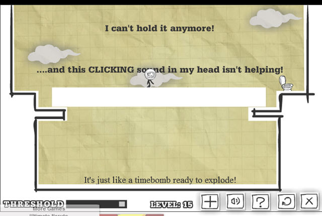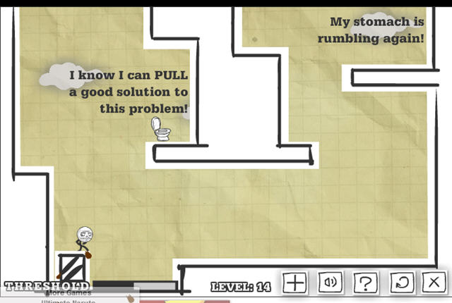 火柴人不知吃了什么坑爹的东西开始拉肚子,你要通过各种方法帮他找到厕所。