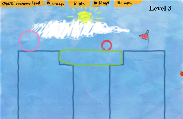 你需要通过手上的笔,画出不同的图案组合,引领小球去到红旗标记。其中包含了重力,打击等等物理要素。