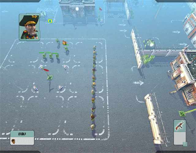 游戏以俯视视角来进行,让玩家可以看得更加广阔(不过怎么感觉有点象“打飞机”类的游戏),战场也体现的更加完善。