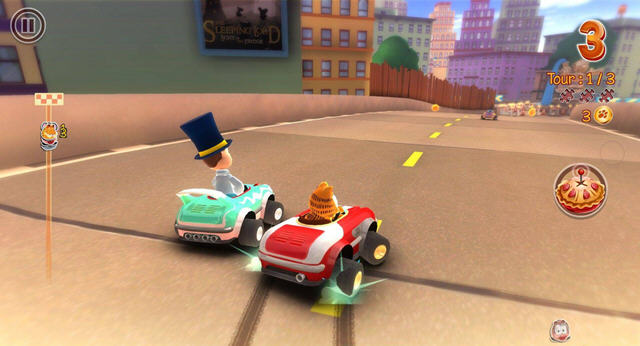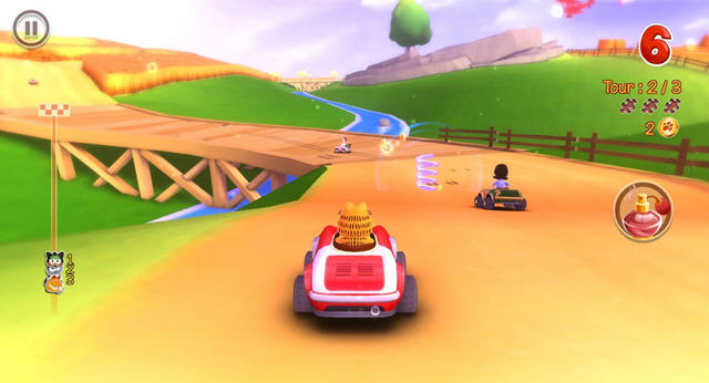 主打加菲猫与卡丁车的这款游戏,能够带来不少的欢乐,你熟悉的加菲猫,小狗奥迪,以及悲剧的Jon都将登场,不论是人物还是画面都围绕着加菲猫的主题。