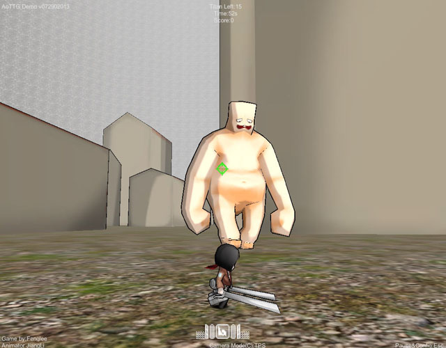 游戏现在还没有时间限制,也没什么任务主线,肆意的虐杀巨人就好。计分的方式是跟“速度”有关,也就是说击杀巨人一瞬间的移动速度越快,积分就越高(这是逼着玩刺激啊)。