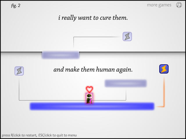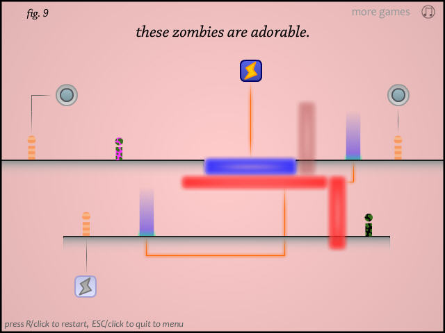 当相爱的男女都变成丧尸后,他们更需要相伴一起,哪怕翻山涉水、排除万难,他们也要相聚。尽管我不知道丧尸为毛会与激光扯上关系,但这不重要,重要的是这游戏的浪漫氛围。无论是人还是丧尸,爱情的故事总是美好的!