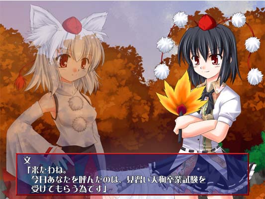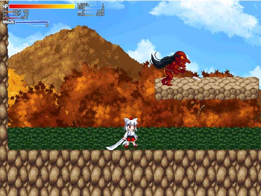 为了成为正式的天狗,犬走椛决定踏上妖怪之山的修行之旅。 游戏目的:藉由杀敌数量的增加来提升自己的等级,游戏关卡共7+1关,有三个难度可供玩家选择。动作RPG游戏。