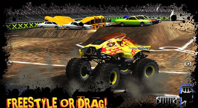 这款Monster Truck Destruction真的相当霸气,看游戏图标就略知一二了,游戏中我们要驾驶一些经过改装的外形狂拽酷霸叼炸天的大脚车来进行汽车特技表演,当然驾驶员肯定没我们的份了,这款游戏正地加入现实的明星赛车手角色,让你更有代入感。