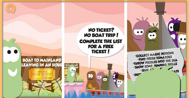 《泡菜爆破 Pickle frenzy》是一款清新可爱的休闲闯关小游戏。游戏的主角是一个小东西,你需要控制它进行前行,双击则跳跃,总之最终要到达另一颗泡菜处,就算通关。