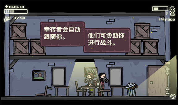 卡通绘画风格的游戏画面带来了更佳的游戏体验,游戏难度不大,操作简单,适合大多数玩家游戏,采用末日后的故事剧情,十分吸引人,喜欢求生类的玩家来体验一下吧。