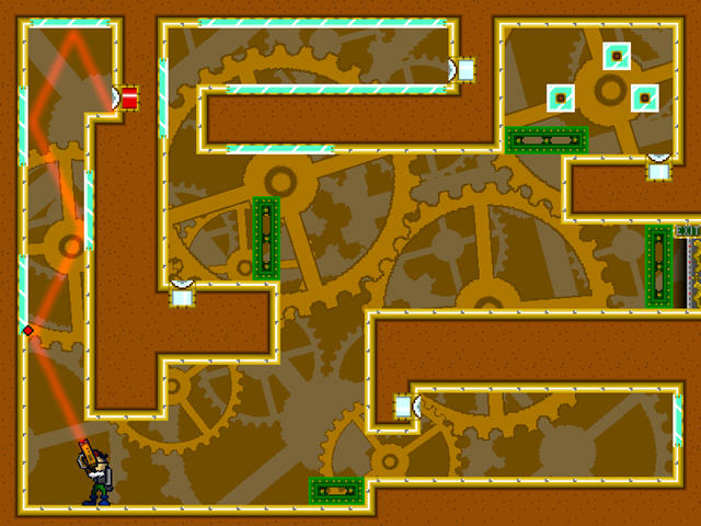 益智类游戏,通过射击镜面反射到开关,然后打开绿色的门到达目的地。