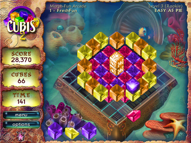 这款消除游戏与其他的同类游戏有很大的区别,玩家将会看到一个全新的消除方法,玩起来有点3D的感觉,通过在纵横列上发射方块来消除。