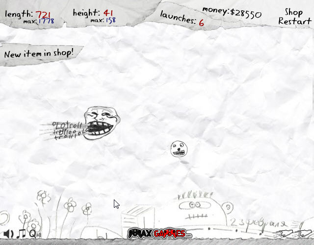 一个非常简单而且休闲的暴走漫画小游戏,发射暴走头像,让它尽可能远的飞跃来取得更高的分数,还可以在商店中购买各种辅助道具。