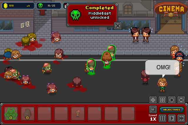 玩家一开始通过不断的袭击城市来获得金币,通过这些金币你不仅可以购买更加强大的僵尸,也是为你的僵尸升级各方面的属性,僵尸本身也有三个等级可以升级。