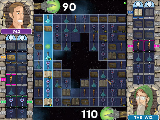 《释放竞赛》截图Geeks Unleashed是一款规则新颖的对战游戏。规则为玩家控制横线,从中任意选择图形为轴决定PC竖线的位置,依次轮流进行,每次只能选择一个图形,先使自己区域的小图标填满的一方获胜。
