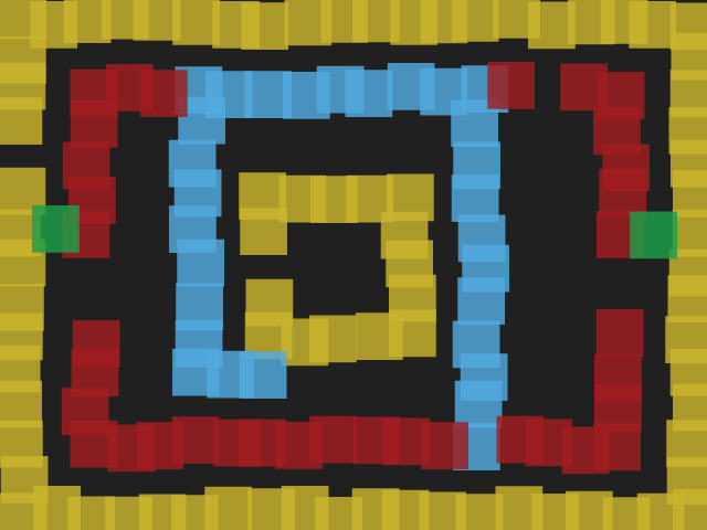 游戏的整个地图是一个迷宫,但是玩家一开始无法看到整个迷宫的样子,玩家一开始便是一片黑暗,只有当玩家碰触到障碍时,才会将对应颜色的所有障碍都显示出来。