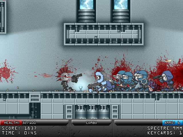 一款血腥十足的横版射击游戏。