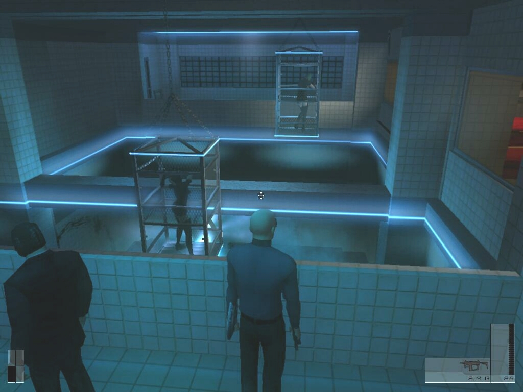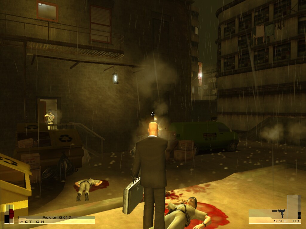 这一代的基本武器和二代差不多,当玩家游戏到越后面会有越多武器可以使用,当然也新增了一些奇怪的武器,像是可以直接刺穿敌人的尖刃勾之外,还可以使用毒剂到敌人后方注射让他致死,而47号这次也多了许多动作,像是可以使用过肩摔等等,每一个关卡许要用什么武器这点就相当重要,别忘了玩家的任务是暗杀,无声无息的杀死敌人才是最高境界,而且本作也多了许多不一样的敌人,之前的二代几乎都是黑社会的帮派分子,本作则多了许多刑警类型的敌人。