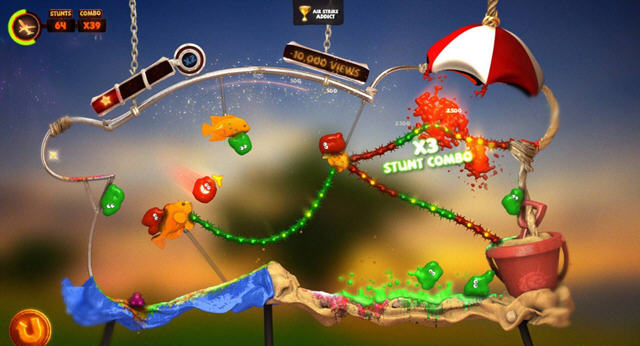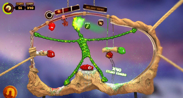 这是一群热爱自杀的疯子,他们看起来像是果冻,通过各种自杀式的表演来完成炫目的特技效果,表演过程中需要玩家通过控制重力方向来帮助他们。