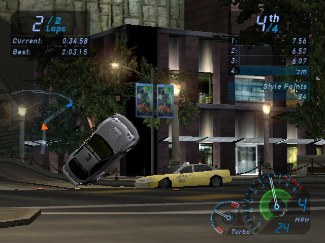 标准的赛车模式,与前几代的极品飞车比加入了空格键的瞬间加速设计,如果好好利用的话可以转败为胜,如果利用的不好也会转胜为败。