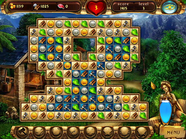 益智消除游戏,用消除得来的金币、木材等建造村庄、喷泉等建筑。