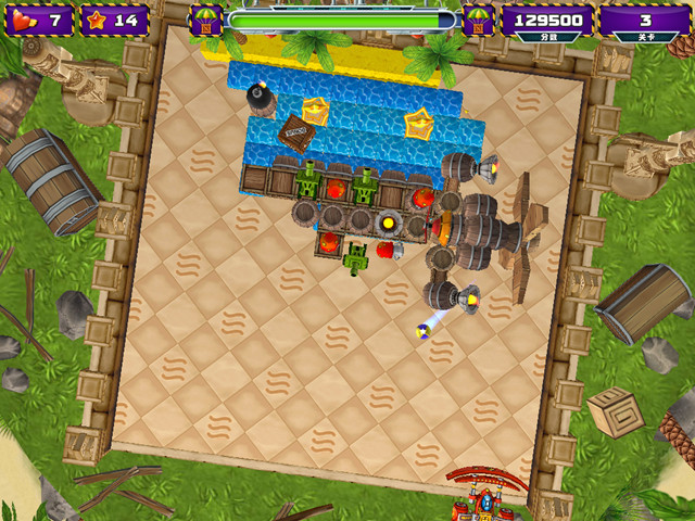 打木头桶木头箱,再打磁力塔 不过要看准时机趁没磁力时再打 这一关是得分关。
