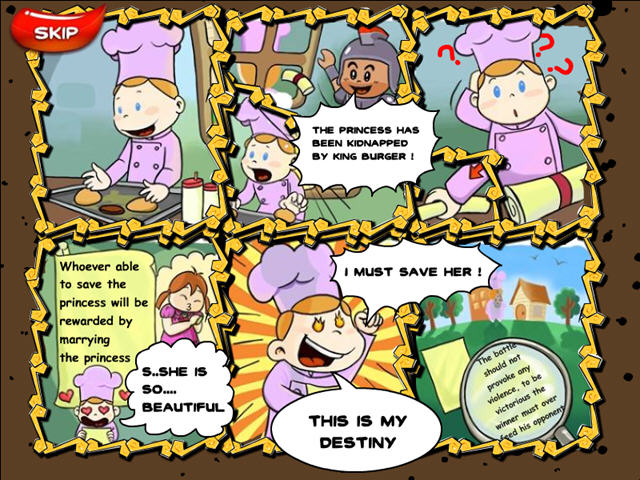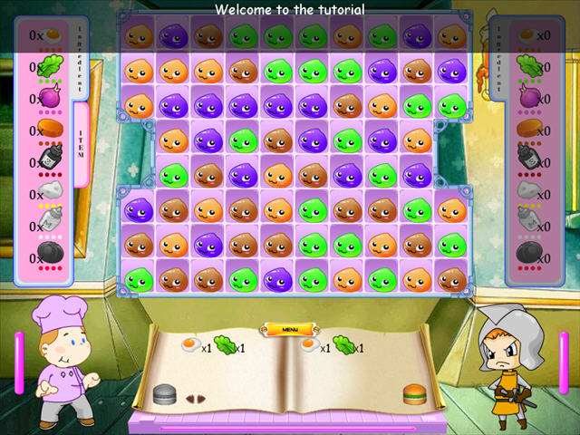 汉堡魔王绑架了公主,快快帮助我们的英雄小厨师前去营救!在这款快节奏的匹配消除游戏中,你需要收集材料,运用自制的汉堡攻击对手。旅行穿越世界各地,运用你的智慧来击败每一个敌人。
