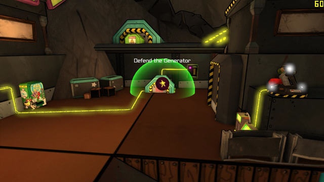 游戏的画面风格非常的像无主之地,玩家在游戏中可以选择各种不同能力的角色,然后保卫好类似发动机一样的基地,用你手中的枪来消灭所有敌人。