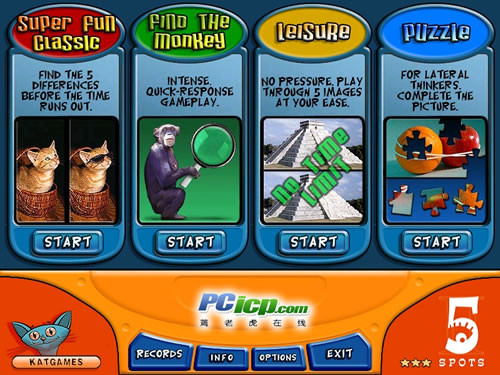 《找别扭》是经典幻想游戏游戏之一。分为2个版本,《找别扭》和《埃及找别扭》。找别扭,玩法很简单,只要在有限的时间里找出若干图片间若干不相同的地方,就过关了游戏共有四种模式,第一种就是找出两张图不一样的地方、第二种是找猴子,找出图片中隐藏的猴子、第三种和第一种是样的,不过是计时间的,第四种是从左边的图片中移走五块,你要在右边的图中按照顺序把找回来。