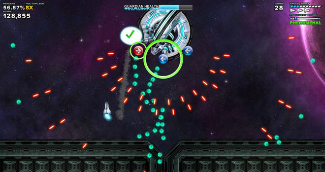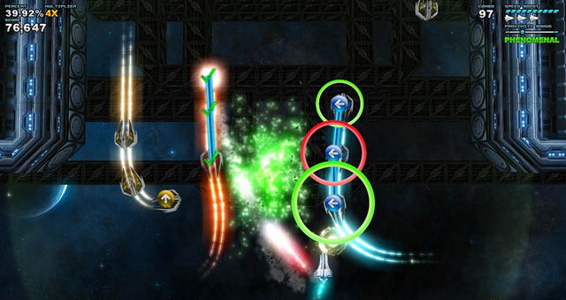 作为一款音乐游戏,方向键自然是必不可少的,这款游戏中你将会开着你的太空飞船,然后在不停出没敌人的太空中生存下来。