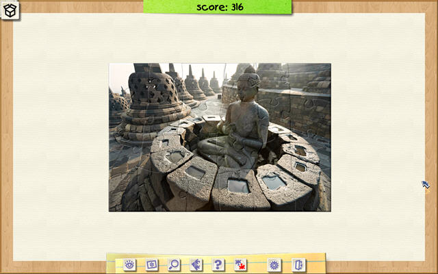 休闲益智拼图游戏,虽说是简单的拼图游戏,但能够看出游戏制作方的细心,游戏中包含了很多贴心的小工具,比如直接提示、显示参考缩略图、显示背景图、放大镜、按拼图所在位置分类等等,而且游戏中没有时间限制,你所要做的就是听着愉快的音乐,轻轻松松地拼出一幅又一幅美丽的画面。游戏中还有一个集邮模块,每次成功拼好一幅画就可获得一张或多张邮票。拼图从简单大块到复杂的300块不等,想要全部拼完也是个不小的挑战。如果你厌倦了烧脑细胞的游戏,不妨来试试这款轻松的小游戏吧。