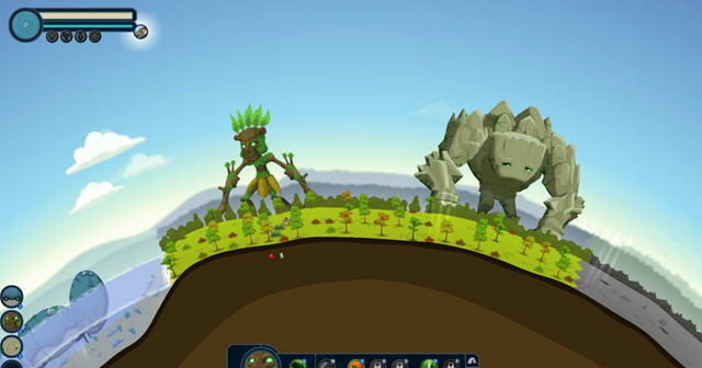 玩家在游戏中需要操控4个代表着不同元素的造物主,来自圆形的地球上创造出各种不同的地形以及生物等,玩家可以转动地球来在不同的地方创造。