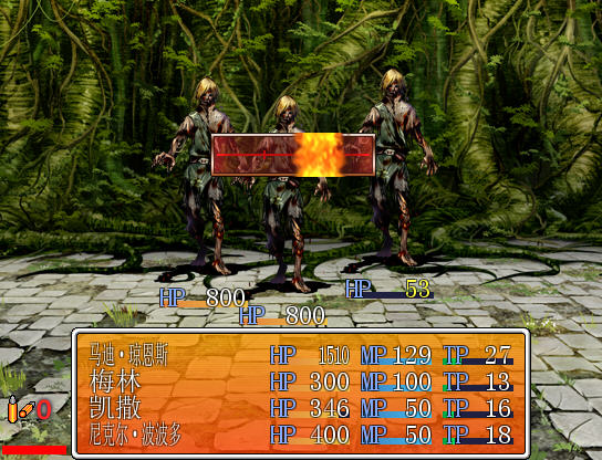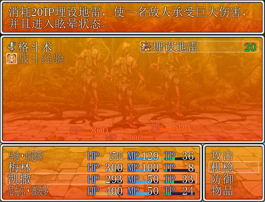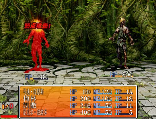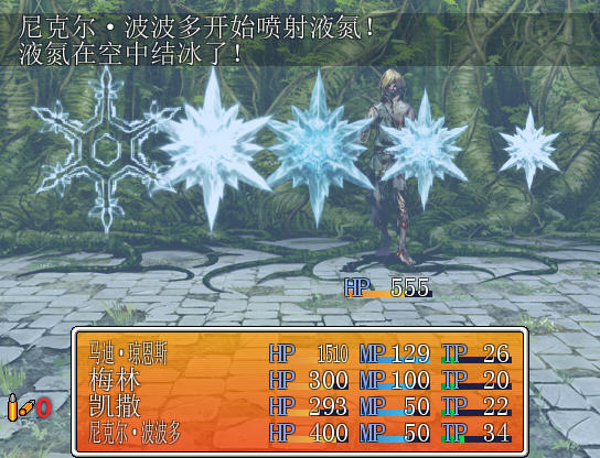 游戏后期玩家的队伍将会有多人加入,需要玩家根据怪物的情况来调整队伍。另外角色技能中蓝色的为消耗TP点数,绿色的则为消耗MP点数。