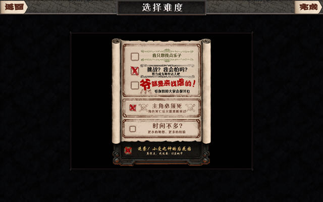 游戏这次的翻译继承了之前的恶搞风格,不论是人物介绍还是技能说明上,都透露着幽默感。如果你够胆,不放试试把“爷就是来找虐的”选项勾上。