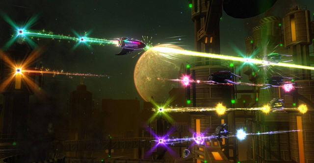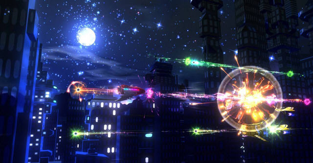 当然一个新奇的点子,是无法支撑起整个游戏的。而音乐游戏和其他类型游戏的结合,也并非易事。曾经有一款XBLA游戏标榜音乐游戏与益智游戏相结合,结果成品是让玩家玩一会儿太鼓达人式的节奏按键、再玩一会儿祖玛,以此不断重复,令人哭笑不得。令人庆幸的是《Retro/Grade》可以说很好地驾驭并实现这个点子,使“STG倒放”和“STG+MUG“不仅仅局限于概念的层面,而是融入游戏以一个生动的姿态出现在玩家的面前。