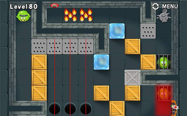 相比之前需要箱子推到固定位置上的版本,这次的推箱子中更多的是设计陷阱,玩家需要将箱子推到特定的地方,来防止或者躲避开陷阱,然后去营救你的同伴。
