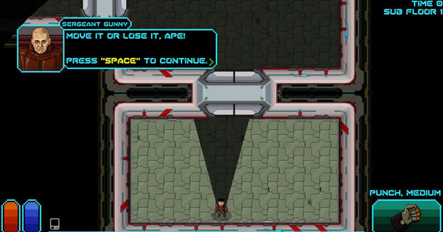 和大多数rougelike一样,游戏需要你一层层的在地牢里往下爬,最终完成某一目标(游戏一共有30层),但与一般rougelike 游戏的奇幻背景不同,the pit是一款科幻背景下的rougelike, 游戏里有激光枪,有EMP手雷,还有医疗包哦。The pit的游戏画面风格也相当讨巧,是制作精美的2D动画风格,简洁却不简陋。