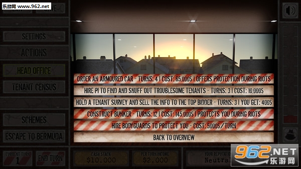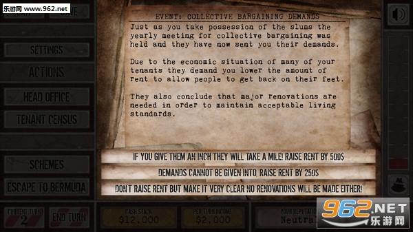 《恶房东模拟器(Slumlord Simulator)》是Slumlord Industries制作并发行的一款独立模拟策略类型游戏,带有很多的黑色幽默以及讽刺意味,回合制的玩法也十分新奇,玩家的选择至关重要,你扮演一个坏房东,一个黑心的贫民窟主,靠着欺压租户敛财,最终目标是用你的财富逃到百慕大。