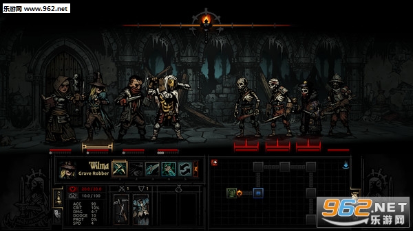 游戏属于复古回合制RPG游戏,画风特别,暴力粗糙,但是渲染突出了整个游戏的黑暗风格和氛围,在保持着整体的阴暗色调的基础上,又令画面不会显得沉闷,而是充满了动感与精致感。再说说游戏中,职业很多,有很多种搭配组队方法,每个职业都有不同的特色,并且有不同的台词。游戏最大的特色就是战斗中的压力值,影响压力值的因素有很多,这里暂不多提,在压力值飙满时,英雄就会爆发,要么自暴自弃,要么奋起战斗,总之这也是这个游戏的随机性,所以这个游戏中每个细节很重要,陷阱,宝箱,任何东西都有可能影响到队员的压力值,保证队伍的稳定性,不然的话很容易兵败如山倒。探险完毕之后英雄也会获得癖好,有好有坏,这也是这个游戏的随机要素,有些癖好是很致命的弱点,甚至会影响整个队伍,该放弃就放弃,该治疗就治疗。总之掌控好整个游戏节奏才是最重要的,要持续发展和探索。