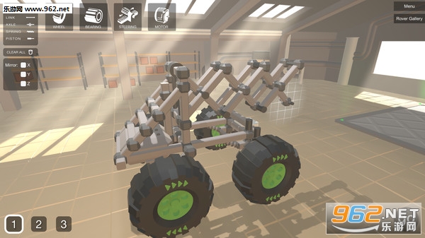 建筑模式是直观而不受限制的!这里有少数的基本零件,但是玩家可以通过这些组成许许多多用处不同的各种大型零件,你将可以实现各种机械系统:转向、液压、悬挂系统等~